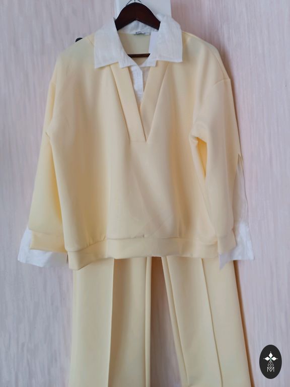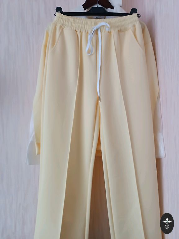 Palaidinė: krūtinės apimtis 120 cm, ilgis 63 cm. Kelnės: ilgis 103 cm, klubų apimtis 110 cm. Audinys tamprus, be pašiltinimo. Pristatymas 1.99