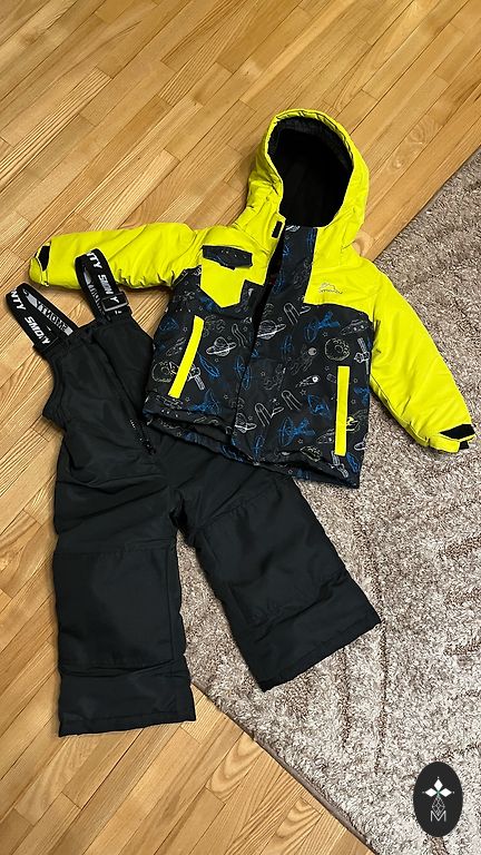Lupilu žiemos striukė 86/92 dydžio su gumine juosta, kad sniegas nepatektų vidun ir audinio rankogaliais ant rankovių. Gaubtas nenuimamas, todėl vėjas niekur neprasiskverbs. Geltonoje striukės dalyje matomos naudojimo žymės, tačiau su stipresne priemone tikriausiai galima išplauti.