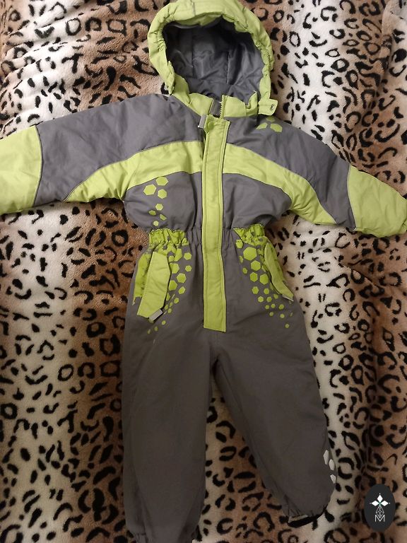 Vidutinio storio kombinezonas, nėra labai pūkuotas, tiks tinkamas važiuoti automobilio sėdynėje šaltu oru ir jei vežimėlyje yra šiltesnis miegmaišis. Be miegmaišio vežimėlyje bus tinkamas rudens, pavasario sezonoms. Dėvėta vieną kartą, šaltas oras atėjo lėčiau nei nešiotojas užaugo. Dydis buvo nurodytas 80, bet geriau tiks mažesniems cm, mano nuomone, apie 70.