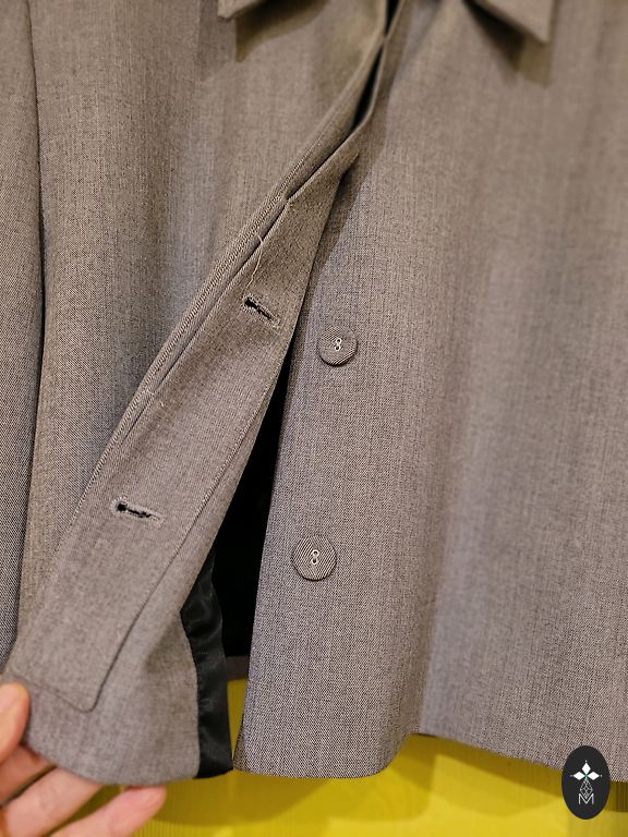 Reizi uzvilkta,nav vel atgrieztas kabatas un šķēlums.