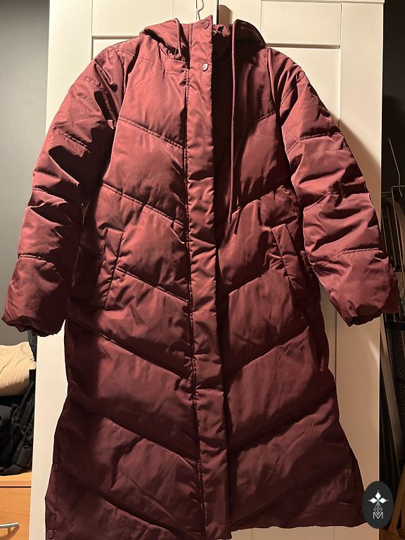 Зарезервировано теплое зимнее пальто. На бирке указан размер 40. Очень удобное, застежка на кнопках, очень теплое, капюшон несъемный. Длина ~91 см. Сзади отражатель немного изношен.