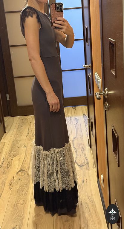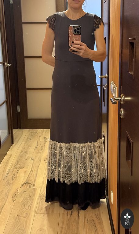 Макси-платье Amoralle. Указан размер ~42-46. Платье надето один раз. Очень эластичная ткань. Прямой крой. С нижним платьем, можно носить на обе стороны - вырез спереди или сзади. Декоративная веревка также может быть впереди или сзади. Сборки по бокам. Выглядит очень красиво. После химчистки. Есть незаметное пятно на руке.