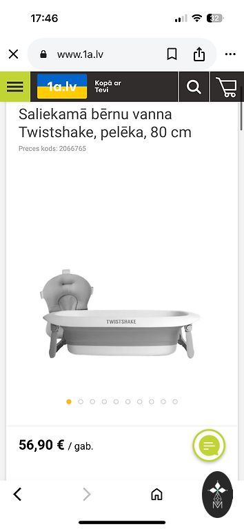 Selling a foldable baby bathtub that doesn't take up much space and is very easy to fold. It will be suitable from the very first bathing sessions. The bathtub has been used for only one child. It comes with a special insert for washing the baby, which can be easily washed in the washing machine. The bathtub has the ability to measure water temperature and drain water through a special opening, making it particularly convenient to use.
