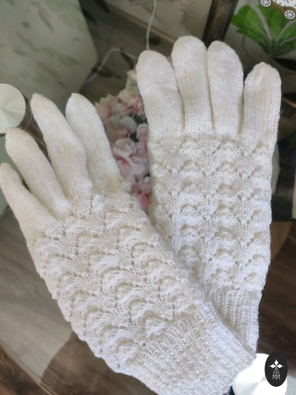 Roku darbs vienā eksemplārā. Ļoti skaista adījuma vilnas cimdiņi, lielākai rokai ar gariem pirkstiem. Krāsa ziloņkaula balta. Pasakaini! Pasūtīju, bet diemžēl man par lielu.