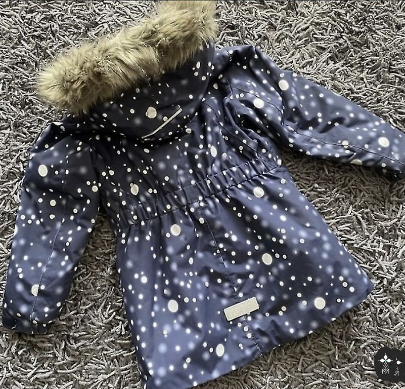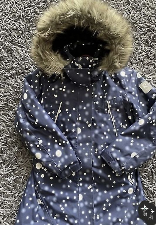 Huppa jaka ir labā stāvoklī, pagarināta, atstarotāji ir padiluši kabatām, iekšpusē ir kabatiņa, viss redzams bildēs.