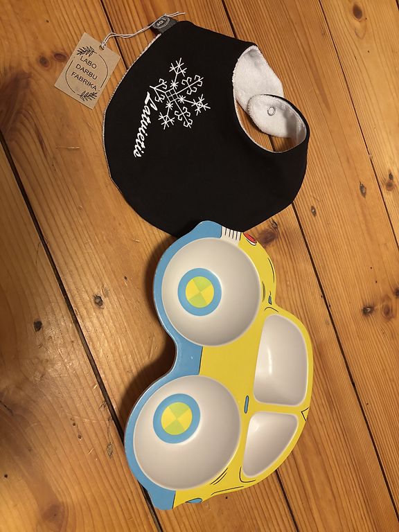 2 musliinist rätikut 70x70 ja vannisisu, mida saab kinnitada vanni servade külge, mis teeb beebi vannitamise palju lihtsamaks!