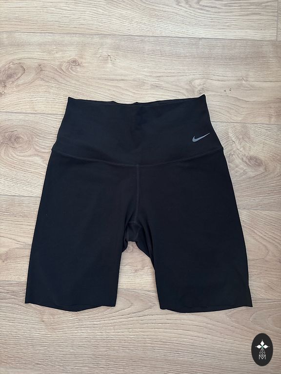 Laisvo kirpimo NIKE medvilniniai šortai. Plati elastiniai juosmenyje ir sutraukiamos virvelės. Šonuose kišenės. Medžiaga kaip džemperio. Nurodytas dydis M. Ilgis 33 cm, juosmuo 40-52 cm, klubai 58 cm. Šortai be defektų, tik virvelės su nedideliu susivėlimu.