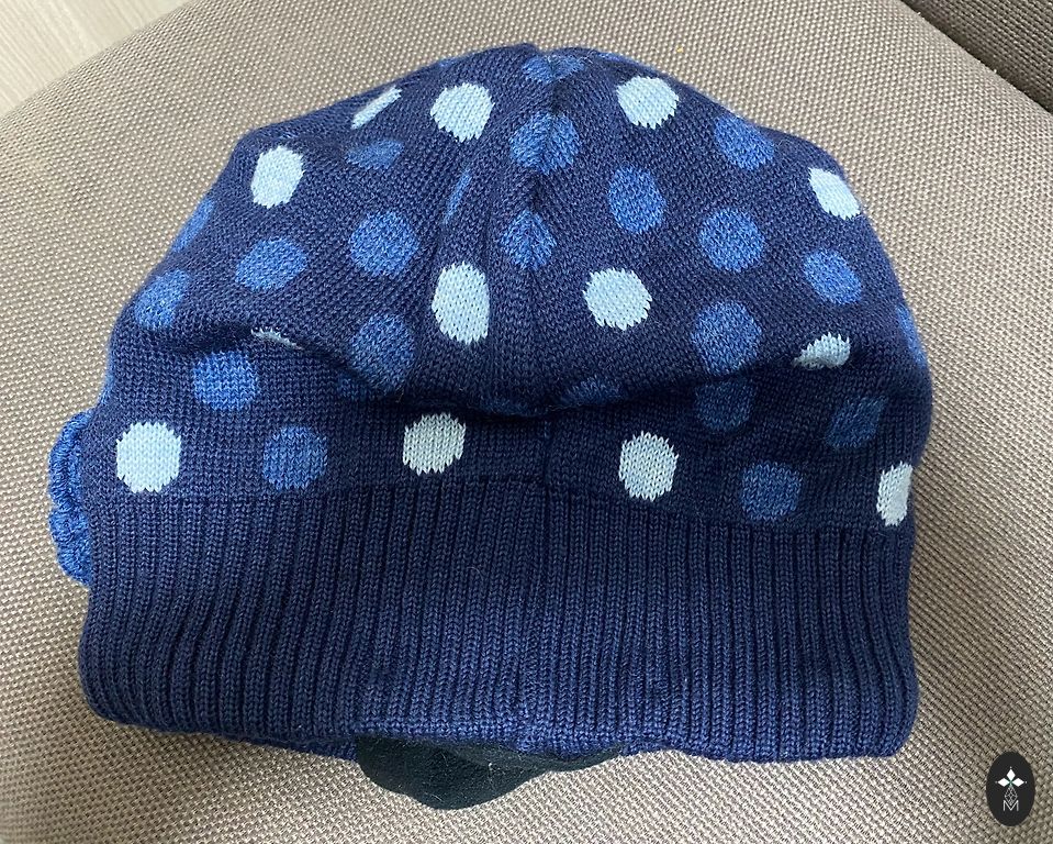 Viršutinis sluoksnis vilna ir dirbtinis kailis, viduje viskozės medžiaga, galima nuleisti ausines. Apskritimas 58 cm.