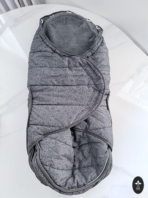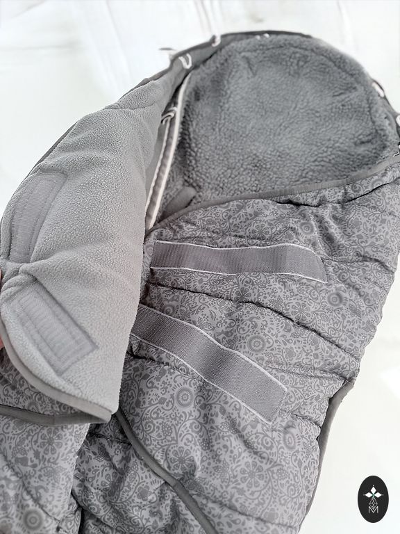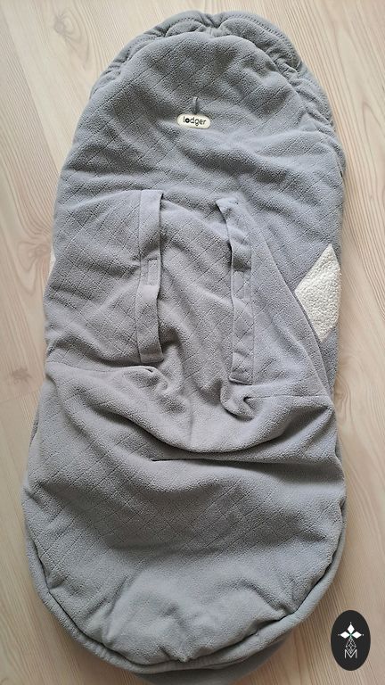 The stroller bag is in good condition, everything is functioning properly, the down is not flattened, the zipper works. There are small spots (visible in the photo) that might be washable, and the rear elastic is slightly detached. The bag is very warm. It can be used both in strollers and sleds.