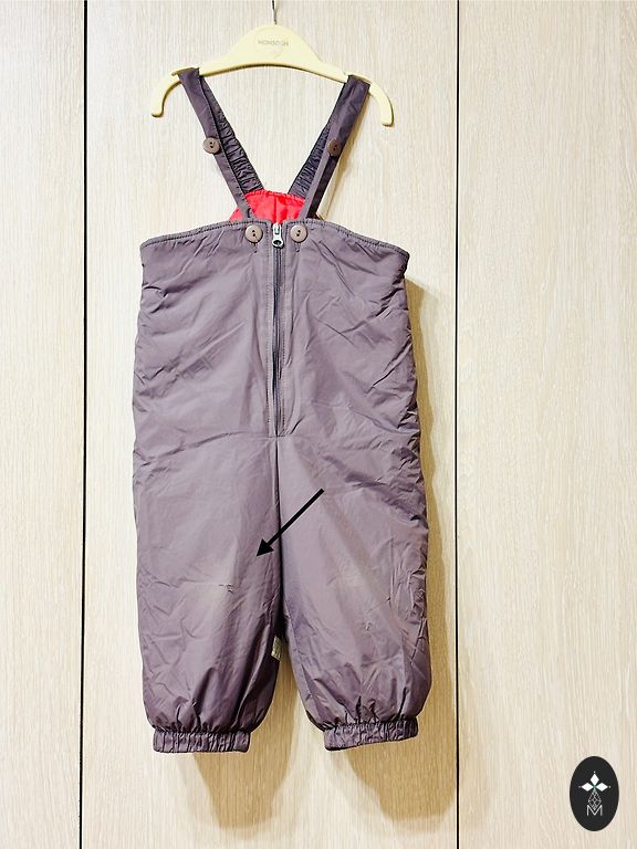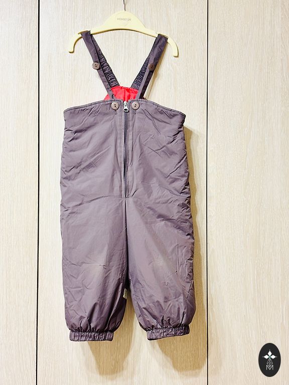 Talvepüksid suurus 92. Ütleksin, et ei ole suure varuga. Püksid on väga heas seisukorras, ainult kummid on veidi veninud ja viimasel pildil on näha väike defekt. Kasutamist ei sega. Hind ei sisalda saatmiskulusid.
