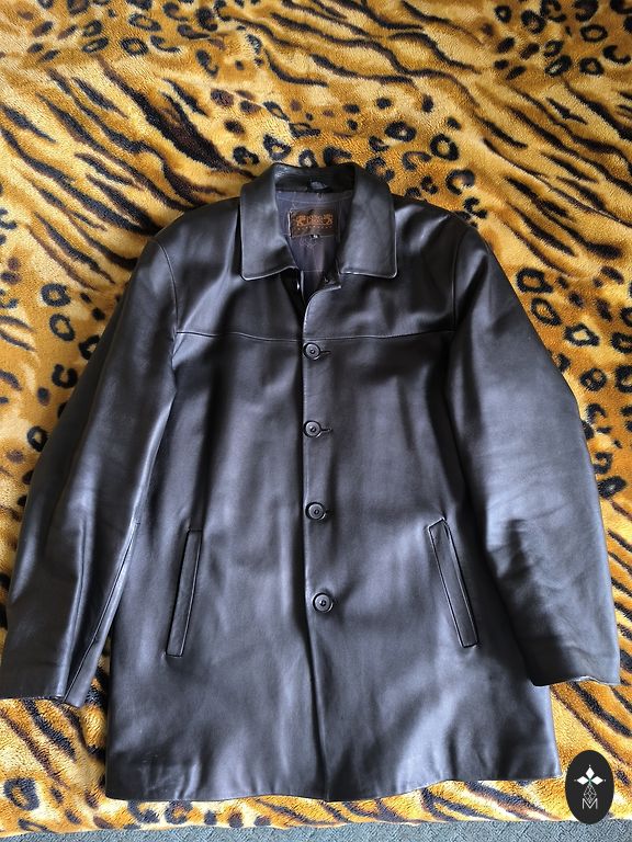 Harley Davidson leather jacket. Size XL, actually L. Bought new, but Harley wasn't bought). Only saw the street once.