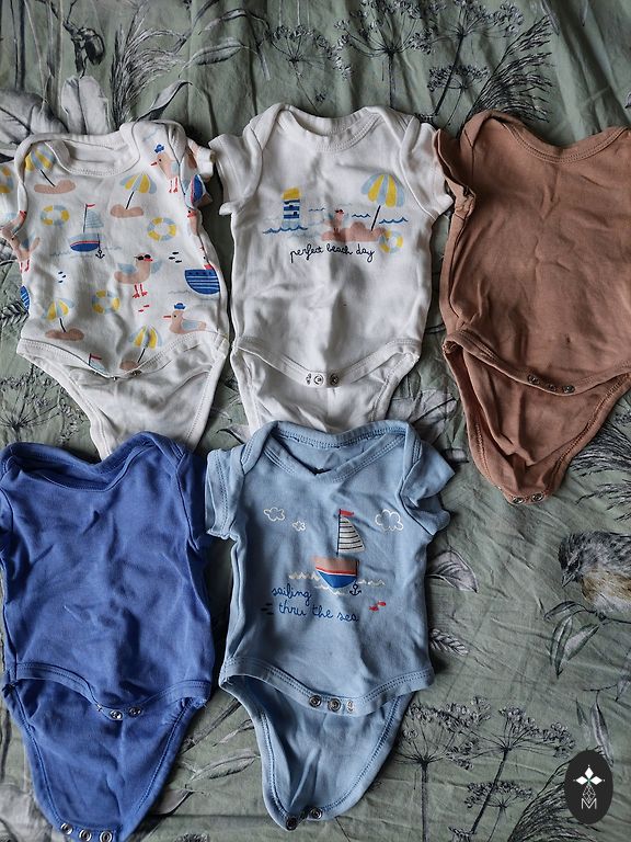 Lindex ribbed wrap bodysuits. Size 50, in reality closer to 56. Fit from 0 to 3 months. In perfect condition, without defects.