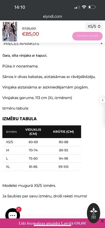 Ļoti viegla uz S-M izmēru, krūšu apjoms 100 cm un garums 63 cm.