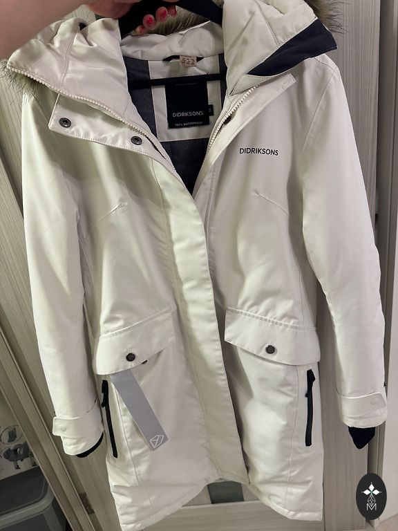 Striukė uždėta 2 kartus, kaip nauja. Dukrai vis dėlto nepatiko mėlyna spalva. Atsparumas drėgmei ir vėjui 10 000. Vienintelis minusas - prarasta nuimama pūkuota dalis nuo gobtuvo krašto. Ant etiketės nurodytas 32 dydis, tačiau realiai yra didesnis - 34 dydis arba net didesnis. Galiu atsiųsti visus striukės matmenis.