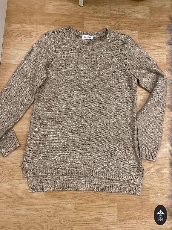 Naujas. Su etikete. Pirktas išpardavime. Yra dėmė, matoma nuotraukoje. Matyt, parduotuvėje suteptas. Ilgis 65 cm, krūtinės apimtis 52x2 cm, rankovės ilgis 66 cm.
