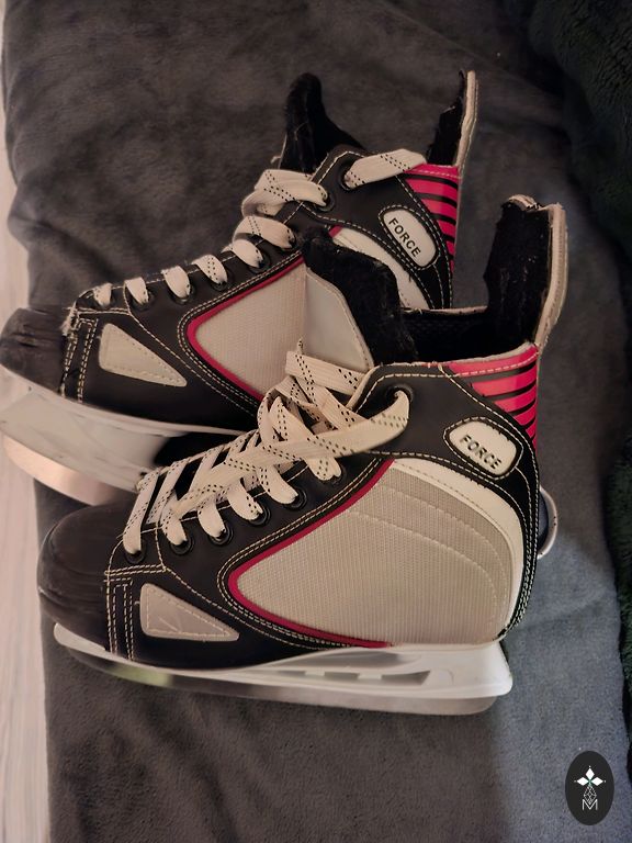 Slidas, iekšpēdiņa 26,5 cm. Slidas vilktas pāris reizes, defekts, atlīmējušies papēži. Pēdējā attēlā redzams. Iespējams var pielīmēt.