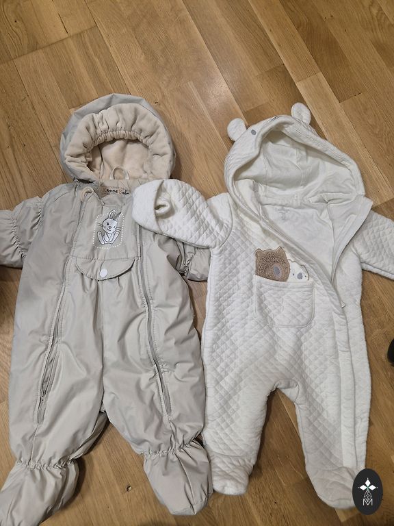 Keletą kartų dėvėtas kombinezonas, labai minkštas ir šiltas. Yra nedidelė dėmė viduje, iš išorės nematoma (matoma nuotraukoje). Galima išvalyti.