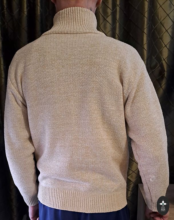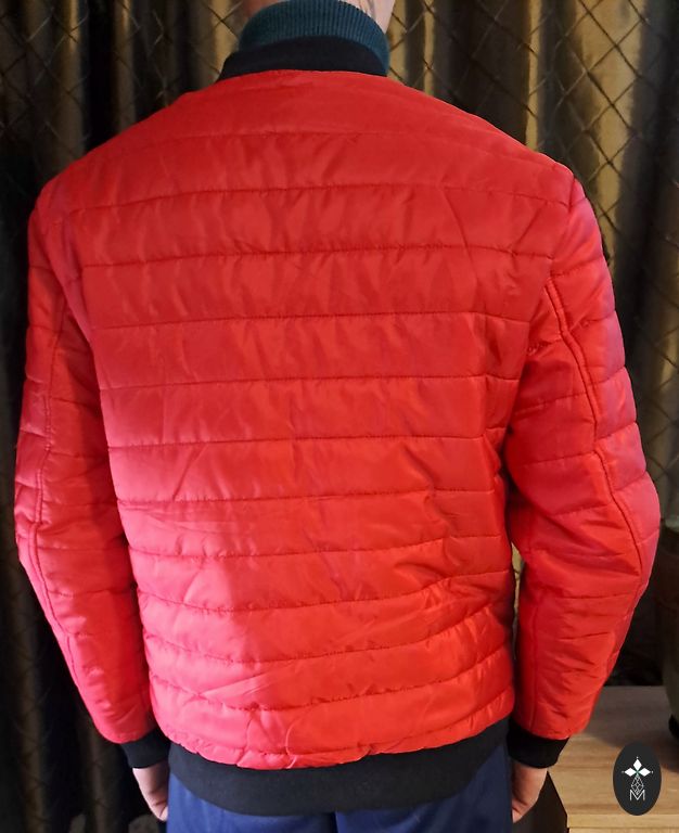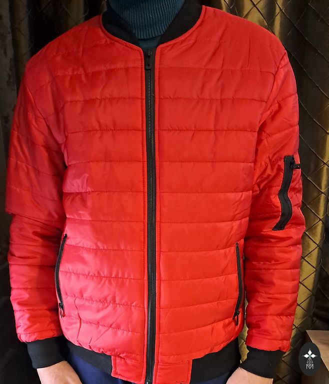 Natural leather men's jacket. Very soft leather. There is a small defect that has been fixed, visible in one of the photos on the inside of the sleeve - repaired with special durable repair patches for clothing.