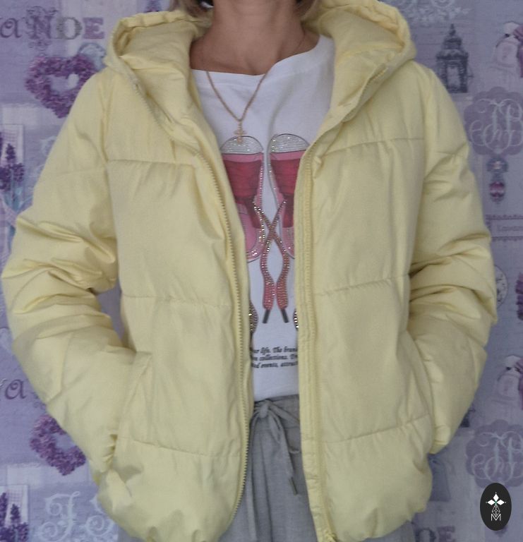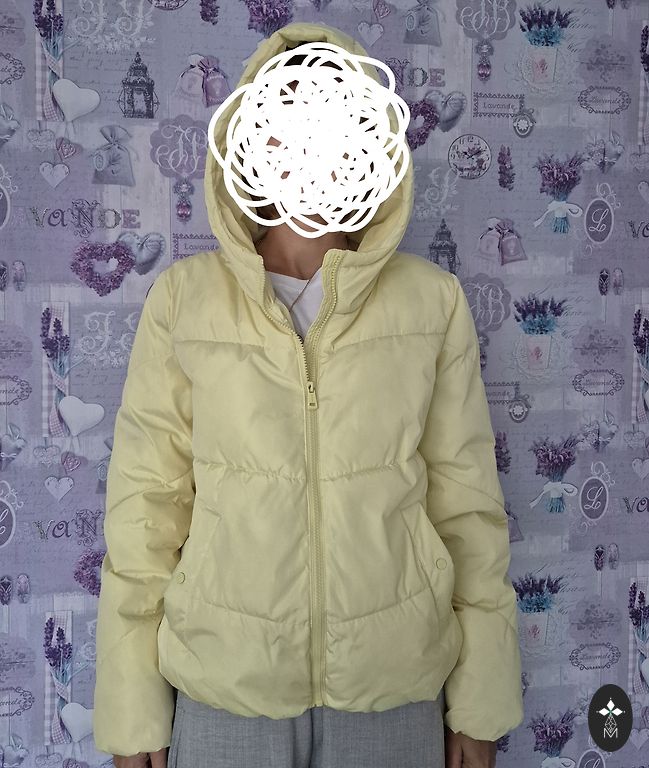 Silta jaka, labā stāvoklī, tikai pēc mazgāšanas. Fotoattēls ar jaku, kā tā izskatās uzvilkta, informācijai.