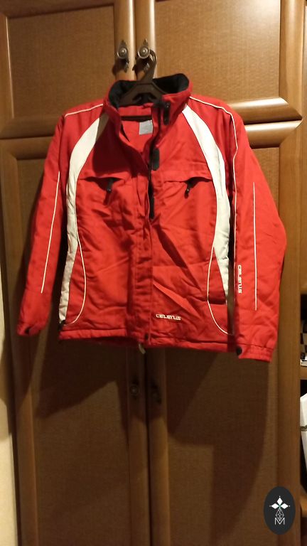 Striukė su nedideliu pašiltinimu. Vietomis išlenda pūkas ir susikimšusi striukės kapišono kraštinė bei kraštinės prie rankovių, trūkumai nėra akivaizdūs, kitų defektų nėra. Pridedu kepuraitę.