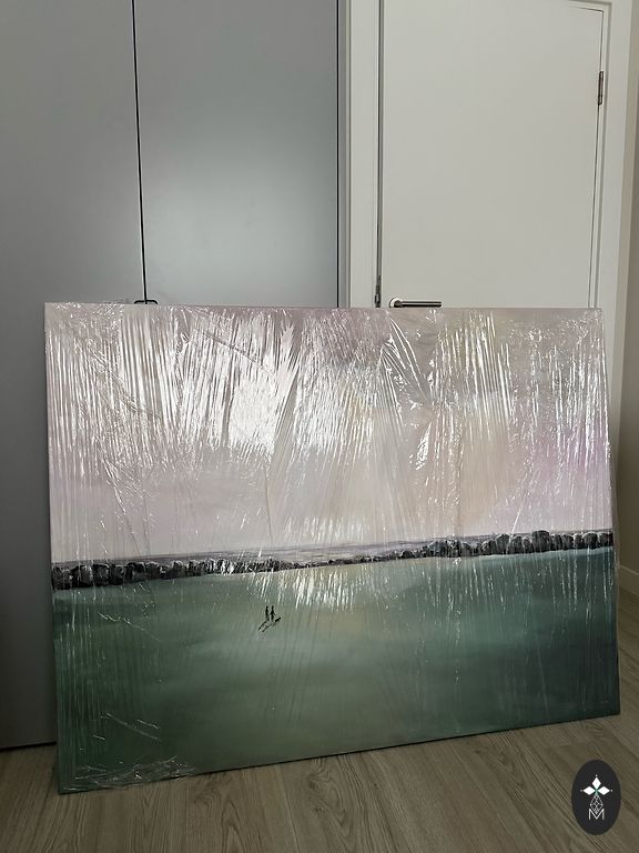 Mažas paveikslas ant sienos rėmelio.