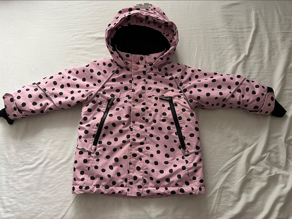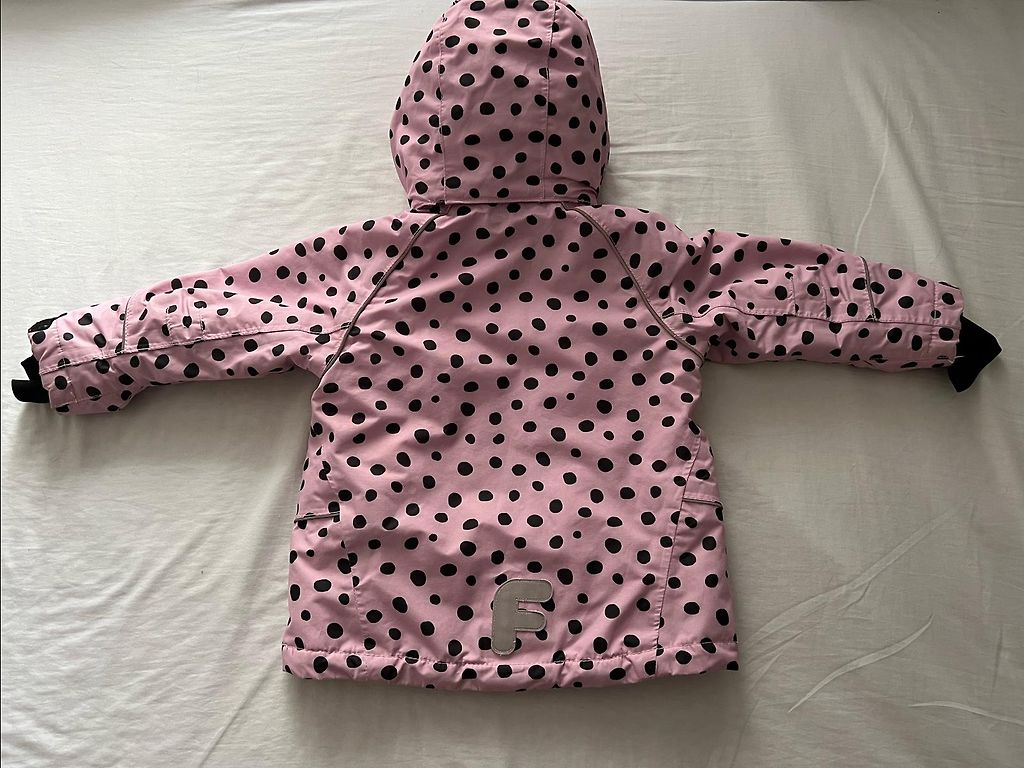 Šauni ir minkšti H&M 92 dydžio lietaus striukė su fliso pamušalu. Trūkumai: kai kur yra dėmių; nuo užtrauktuko nusilupusi spalva; pirktas naudotas čia pat Andelėje, todėl jau įspausti dviejų vaikų vardai :) Pirkėjas padengia siuntimo išlaidas.