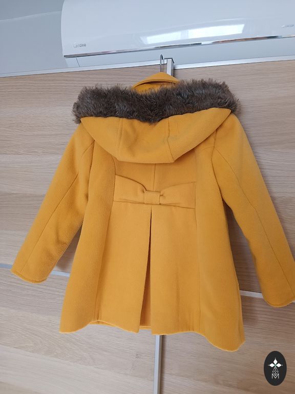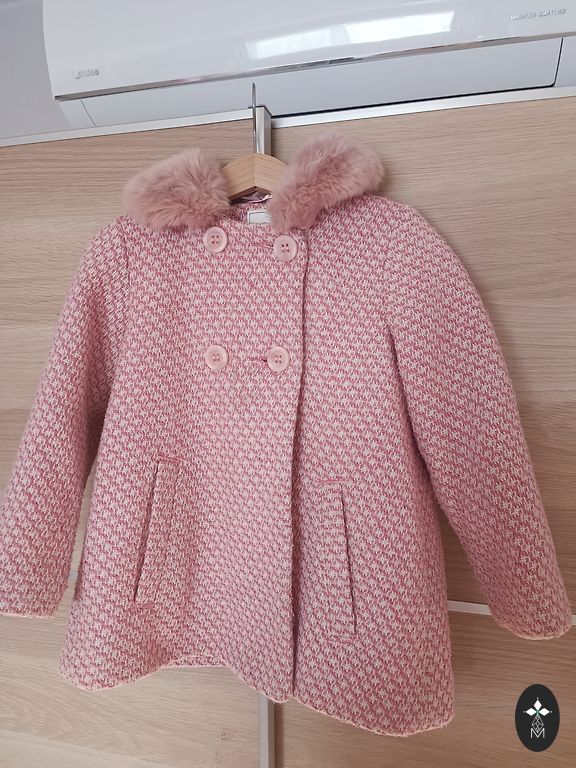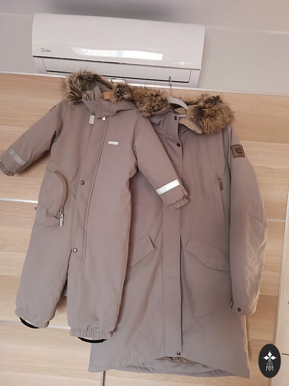 Yra vizualinių defektų, kurie netrukdo naudoti. Rankovės, keliai ir šiek tiek ant krūtinės yra nusidėvėję. Su apatiniu sluoksniu nešiojame net žiemą.