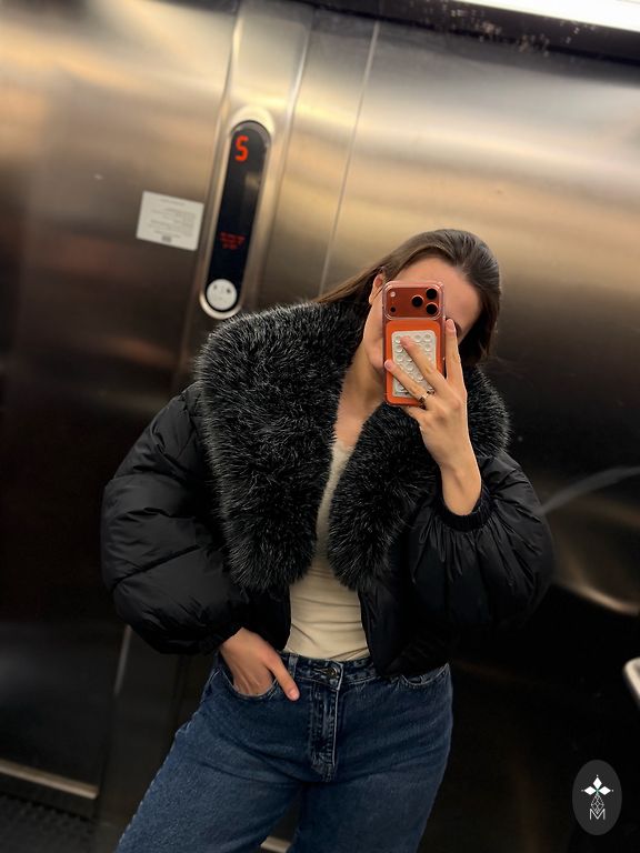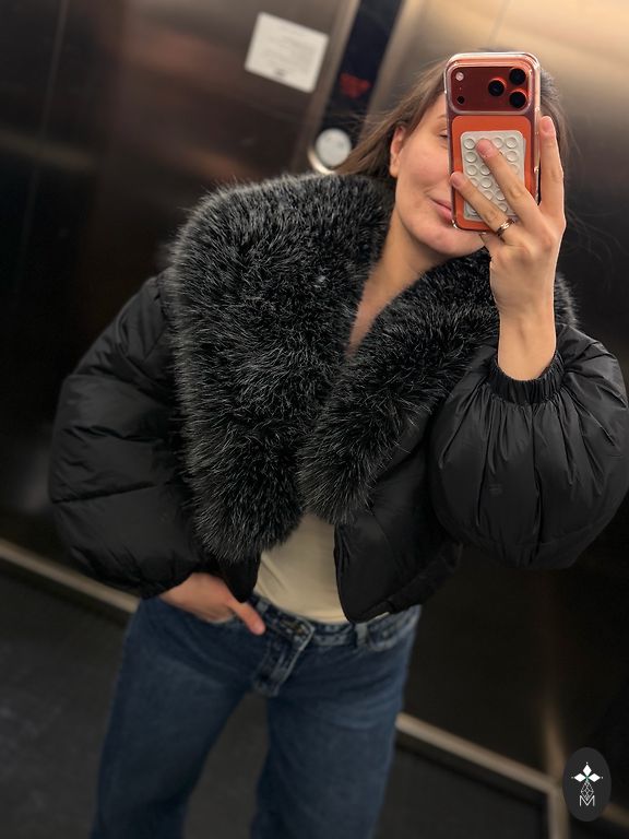 New down/wool jacket with natural fur
