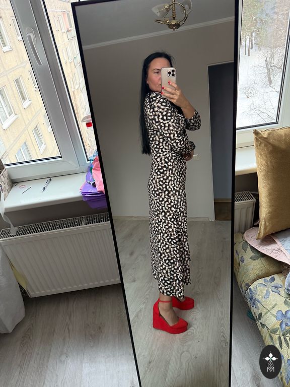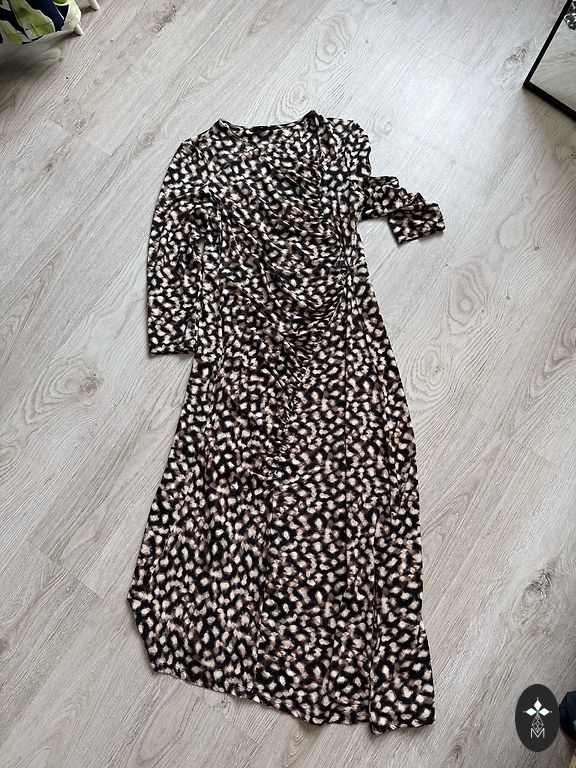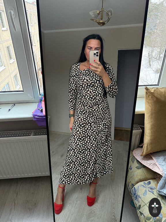 Skaista kleita aktuàlajos toņos. 40izm. Kleitai ir josta,kas krustojas priekšà un smuki izceļot vidukli, sasienas uz muguras. Garums 139cm. Kleita ir uzvilkta tikai 1x.
