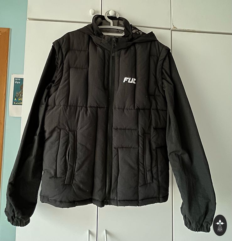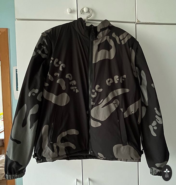 Mažam M dydžiui striukės ilgis 70 cm, po pažastimis 55 cm x 2, rankovės ilgis 72 cm. Gaubtas yra nuimamas.