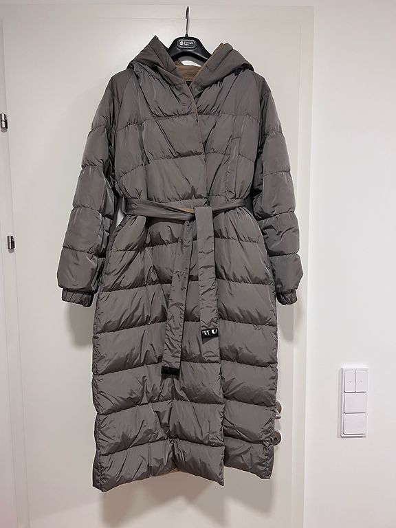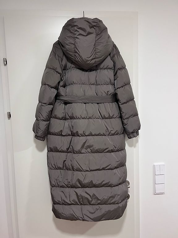Paltas buvo uždėtas tik kelis kartus, labai geros kokybės (pirktas Bergoje), bet stovėjo spintoje apie 5-6 metus, klasikinis dizainas, kuris neišeina iš mados, audinys pilkas su šviesesniais ir tamsesniais pilkais taškeliais ir mažais pūkeliais, visai nesiglamžo, audinys nėra storas, bet labai šiltas net žiemą. Paltas yra ilgas ir rankovės taip pat ilgos.