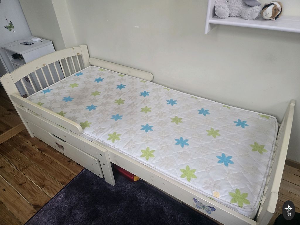 Good condition, the mattress has some stains. Located in Purvciems.