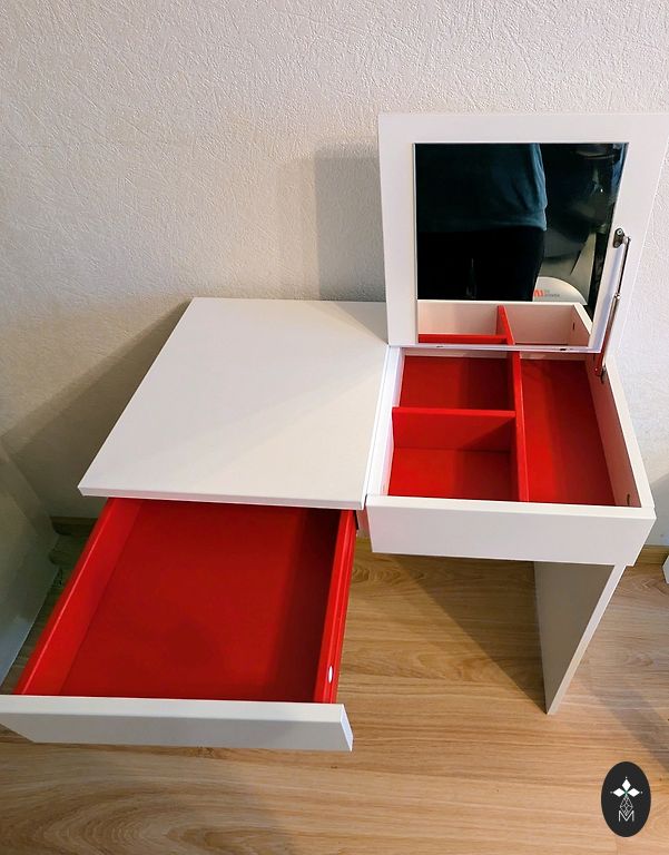 A dressing table with a mirror in good condition, purchased from YUSK 2 years ago when the price was 99 euros. There are small scratches on the legs and some paint is chipped on the shelves (photos attached). We decided to sell it because it doesn't fit into the new interior. Delivery within city limits or self-pickup is possible.