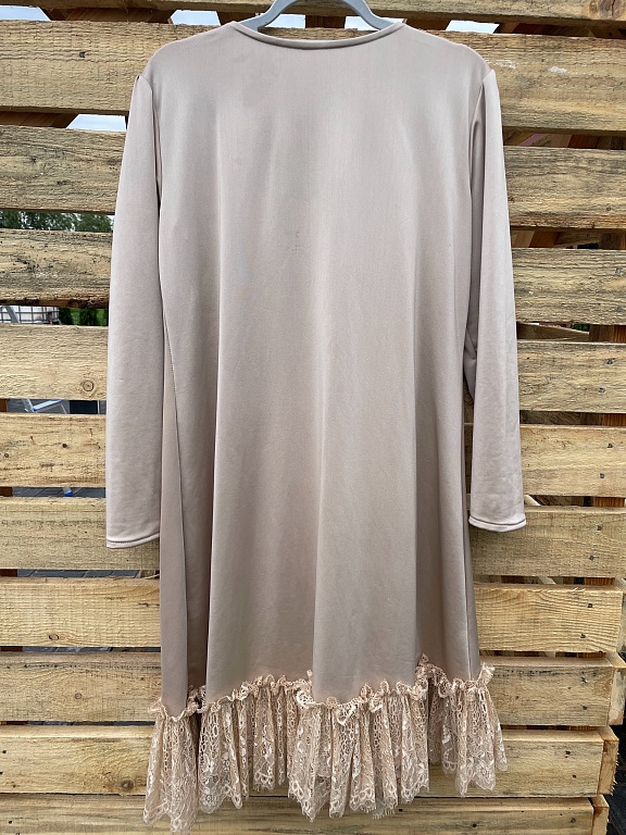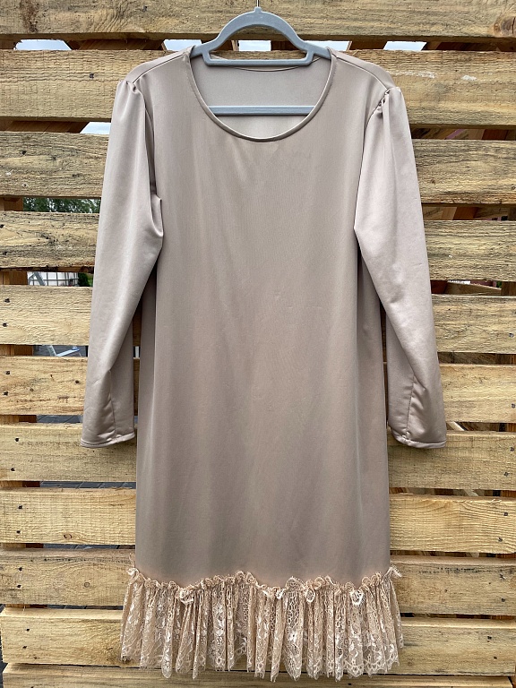 Labai gražiai suknelė atrodo ant figūros, V formos iškirptė, šone yra užtrauktukas.