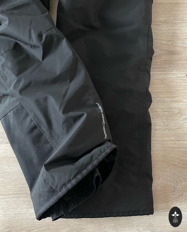 Juodi prigludę leginsai su aukšta juosmens ir platintais galais.