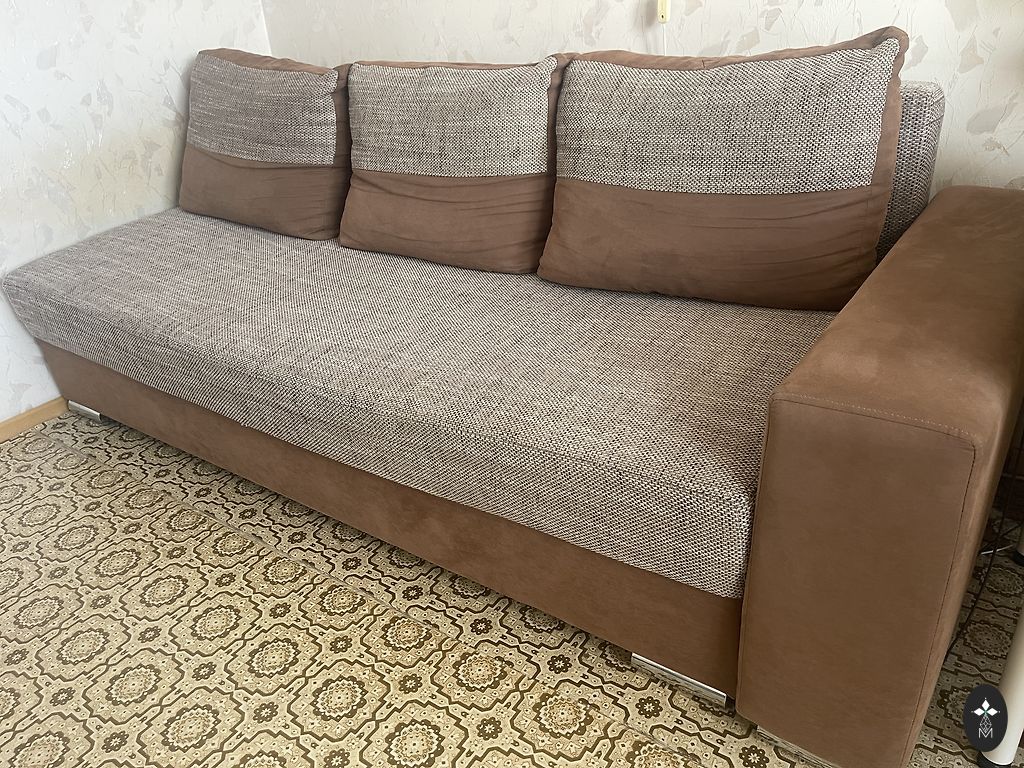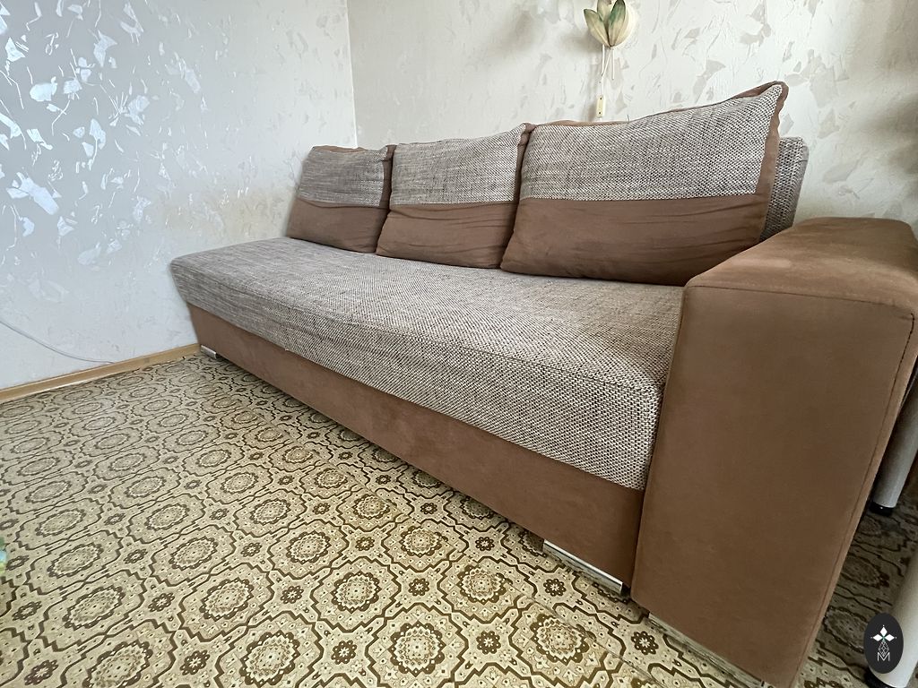 Parduodu naudotą trivietę sofą. Sofa neišskleidžiama, bet patogi sėdėti! Abi dalys gali būti atjungtos. Ilgis 224 cm, plotis 80 cm, gulėjimo vieta 160 cm, aukštis iki sėdimosios dalies 40 cm.