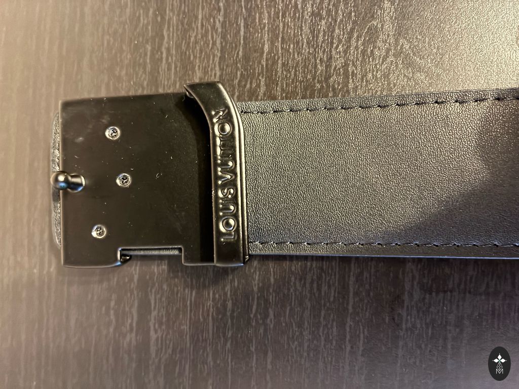Ruda Louis Vuitton diržas su charakteringu languotu raštu ir sidabrinės spalvos LV sagtimi. Vidinė pusė yra šviesi, diržas atrodo elegantiškas ir kokybiškas.