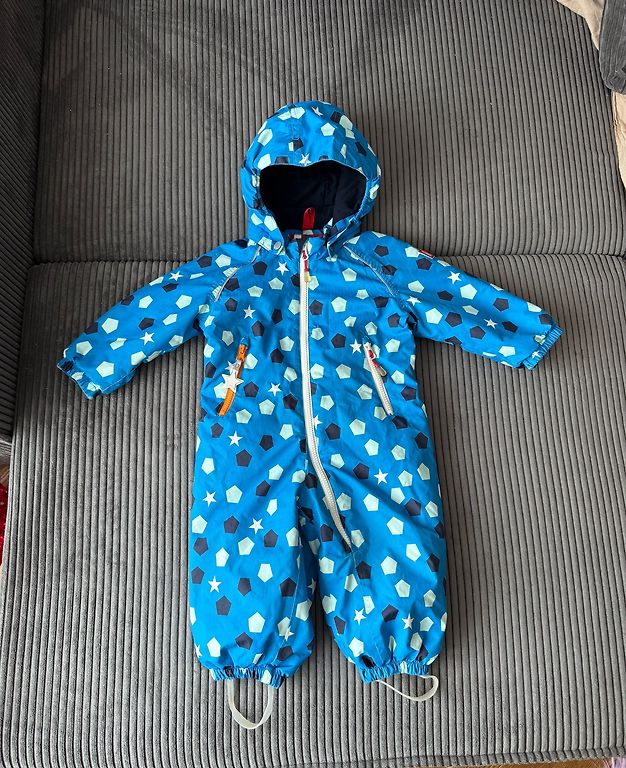 Warmly used, defect on the knees (visible, but I think it's not critical), the bottom has not faded. Indicated as 134, but there is room. Winter, but not very puffy, which allows the child to move freely! Maybe someone can use it as a home or spare option! The suit can still be used and used! 🙂🙃