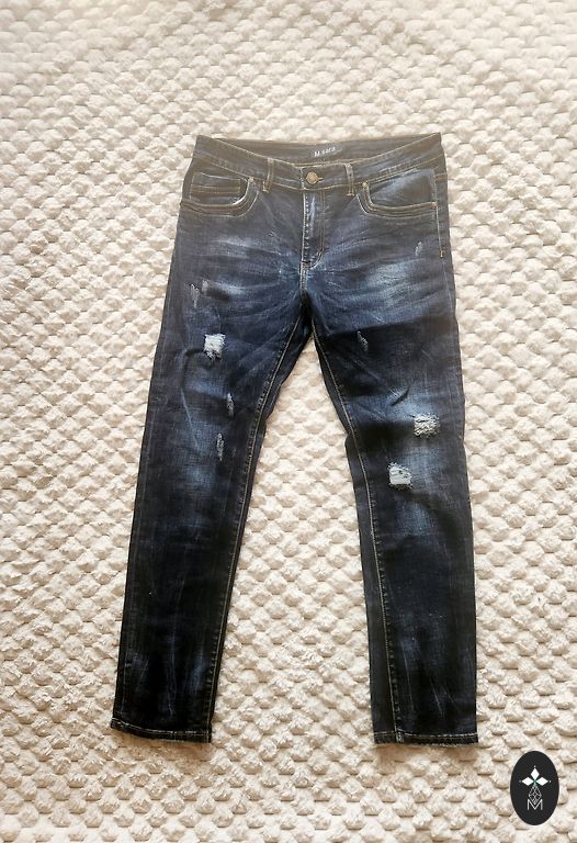Джинсы из денима Y2K с панк-альтернативными нашивками.