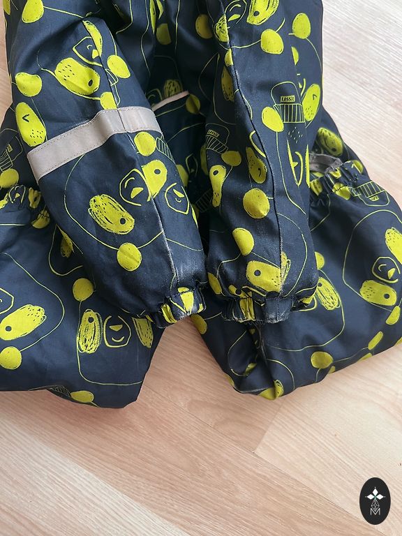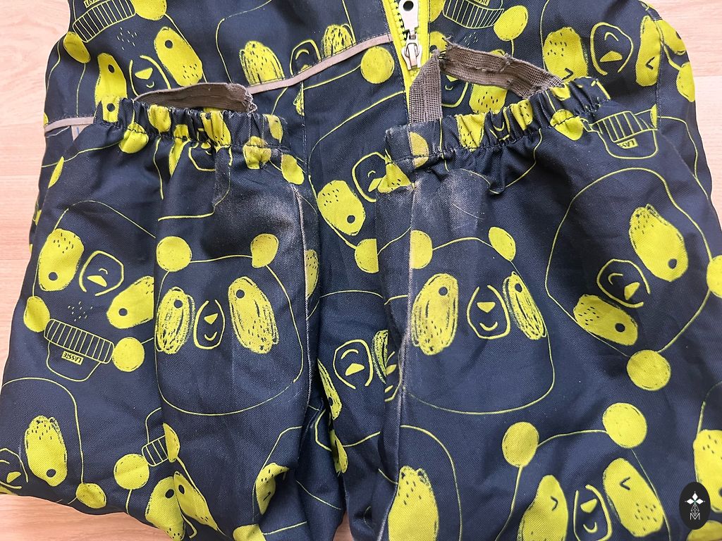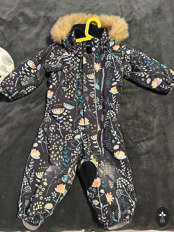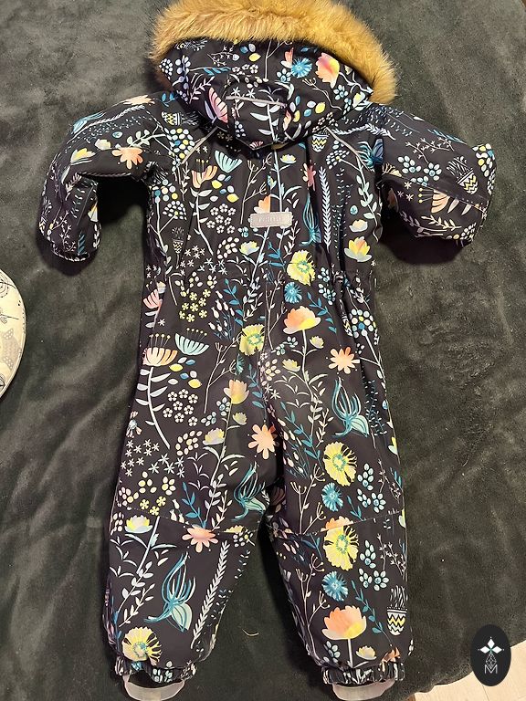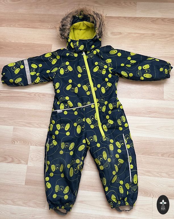 Šiltas, patogus žieminis kombinezonas, nurodytas dydis 90 cm, tačiau tinka didesniam dydžiui. Trūkumas, kuris netrukdo ir nėra matomas - kombinezono kojų kraštai nusidėvėję - žr. nuotrauką. Keliai, užpakalis nėra nusidėvėję - ten viskas gerai.