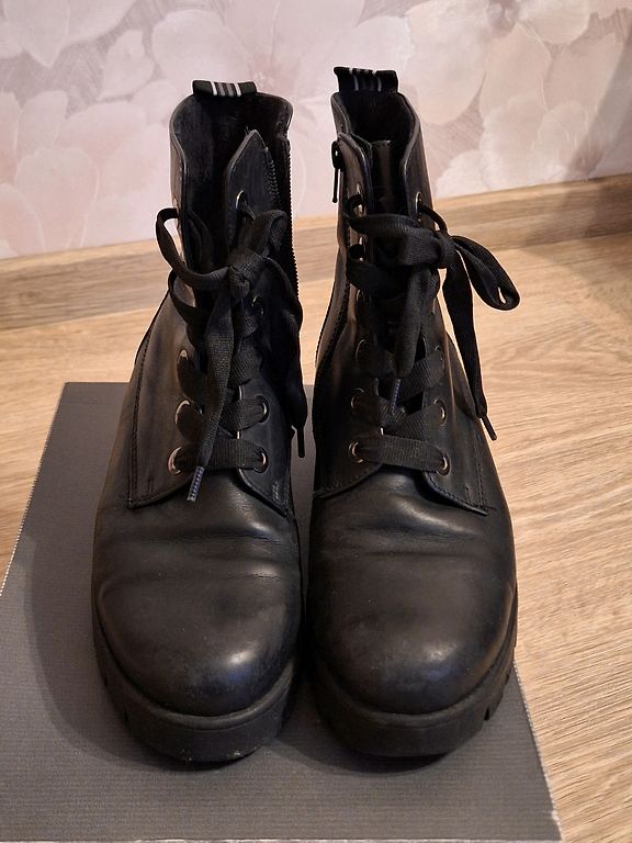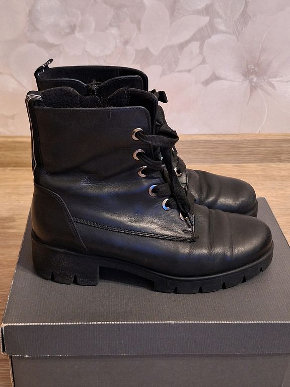Puikūs Lowa Renegade GTX MID moteriški žygio batai, 41 dydis. Rekomenduočiau 40/40,5 dydžio nešiotojai, nes aš nešioju 41 dydžio batus, tačiau šiam modeliui net su plona kojine nykštys remiasi į bato priekį. Avėti tik kelis kartus, nes netinka dydis. Puikios būklės. Vidpadžio ilgis ~ 25,6 cm. Gore-Tex membrana užtikrins sausas kojas.