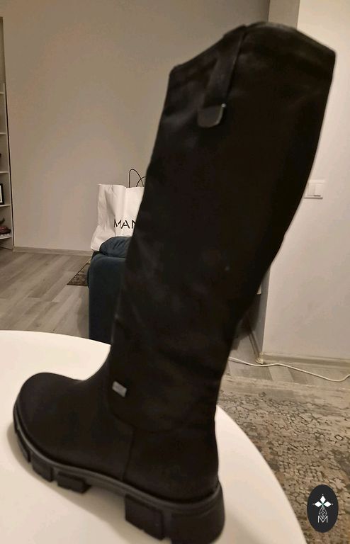 Очень качественные кожаные сапоги с теплой подкладкой. Куплены в прошлом году, надеты 1 раз на несколько часов, практически новые. Куплены в магазине Gabi; фирма monalisa. Непролетающая подошва.