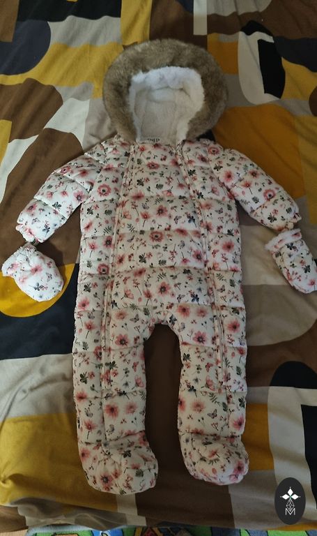 Labai geros būklės. Tinka žiemai. Poliesteris ir poliuretanas, pamušalas medvilnė. Krūtinės apimtis: 46 cm Liemens: 48 cm Klubai: 53 cm Rankovės ilgis: 22 cm