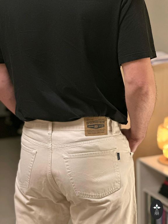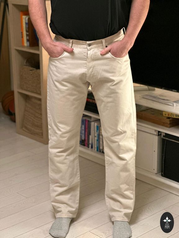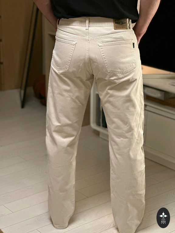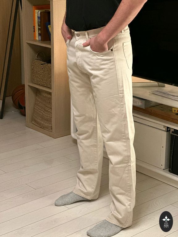 Matmenys: plotis - 44cm, išorinis kojos ilgis - 112cm, vidinis kojos ilgis - apie 82cm. Galiu atsiųsti papildomų nuotraukų apie visus ilgius.