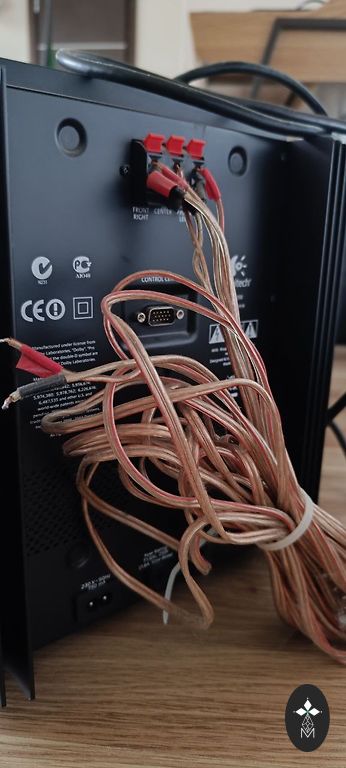 Logitech Z5500 5 kolonėlės su žemų dažnių garsiakalbiu. Techninė būklė ideali, vizualiai geros būklės, yra keletas įbrėžimų. Nuo vienos kolonėlės laidelio nusilupo guma, bet viskas veikia, naujas toks laidelis kainuoja maks. 5€. Tikrą vaizdo įrašą su preke galiu atsiųsti privačiai.