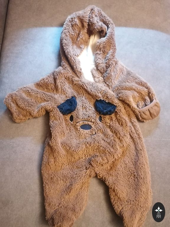 Used gently, mostly for car trips. Warm, soft interior, does not shed. Foldable sleeves and legs. No defects.