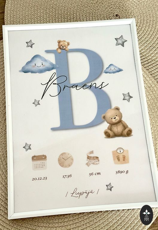 Kuriu suasmenintus naujagimių plakatus su vardu, gimimo duomenimis ir švelniais iliustracijų akcentais. Kiekvienas dizainas yra individualiai sukurtas, derinant spalvas ir nuotaiką būtent jūsų mažyliui.