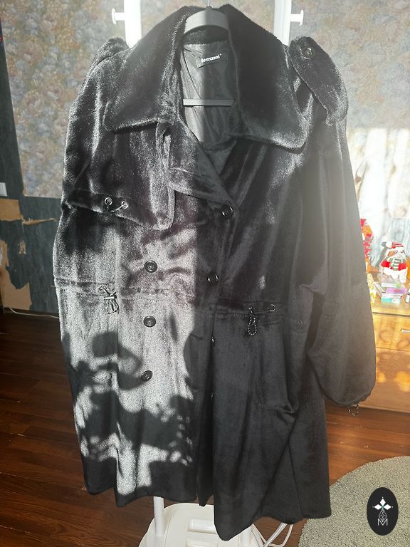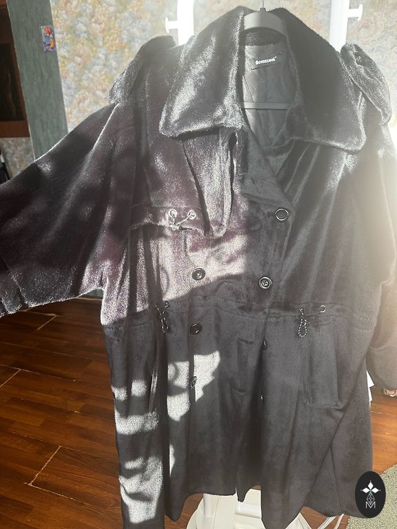 Gandrīz jauna. Izmērs 6XL. Kažoks maina krāsu atkarībā no apgaismojuma. Elektriskajā apgaismojumā tas ir pelēks, dienas laikā ar zilu nokrāsu. No defektiem - jāpiešuj āķi, tāpēc cena ir būtiski samazināta. Tikšanās vai Omniva, DPD (+2€)