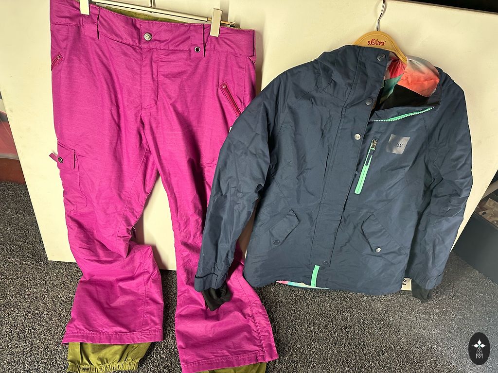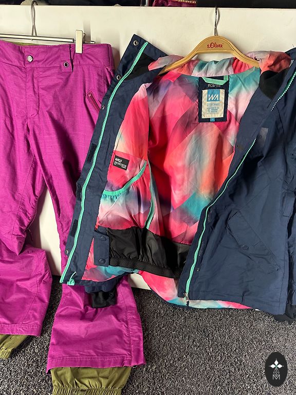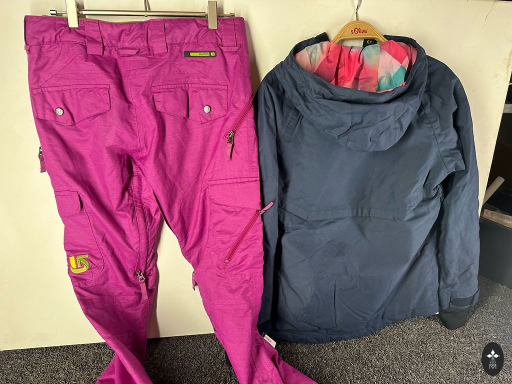 Buvo panaudotas vienas sezonas, šiam jau mažai. Kelnių ilgis nuo juosmens 105, nuo kojos pradžios 76, striukės ilgis 70 nuo užtrauktuko pradžios ir rankovė 61. Striukė - burton, kelnės - maier sports
