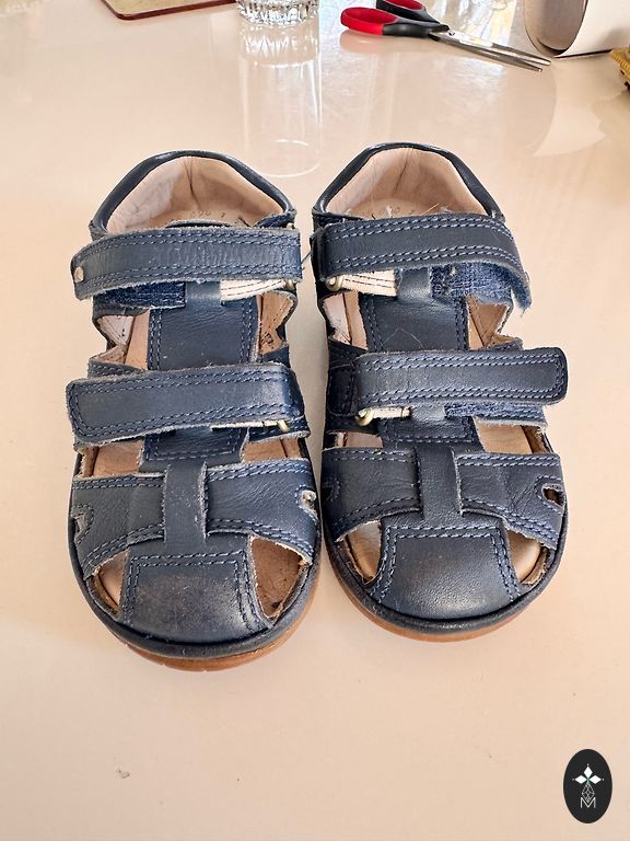 Nupirktos naujos. Naudotos tik 4 mėnesius. Pirmos darželio sandalai. Šiek tiek apibraižyti priekiniai ir šiek tiek šonuose. Nuotraukas galima pamatyti. Manau, nieko baisaus. Vidpadis 13 cm su mažyte atsarga. Siuntimas įtrauktas į kainą.